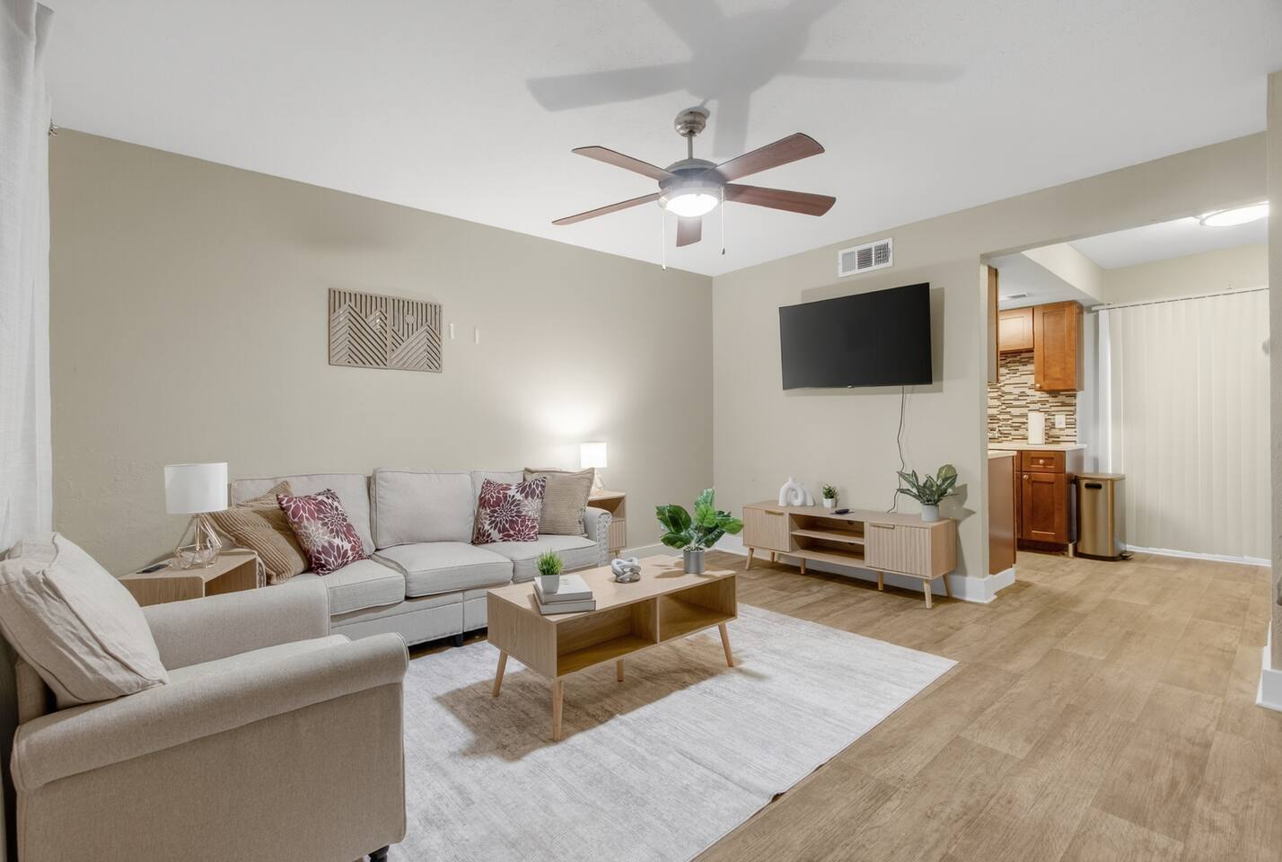 Discover your perfect Denton home base in this bright, modern one-bedroom apartment. Ideal for solo travelers or couples, the space is filled with natural light, creating a warm and inviting atmosphere from the moment you arrive.